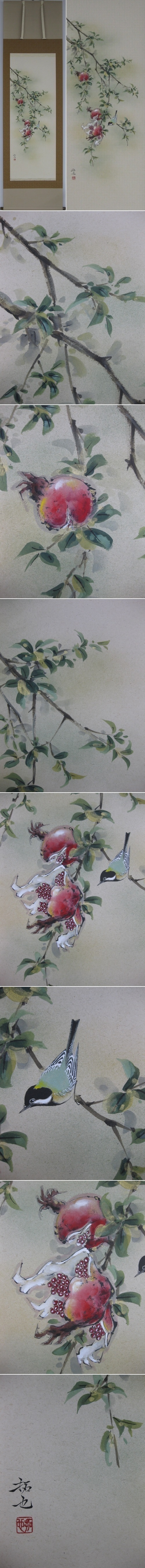 石榴(ざくろ)は子孫繁栄や子宝運を持つと言われておりとても縁起の良い果実です。開運掛軸としても秋の掛軸としても掛けていただけます。(新品・肉筆)