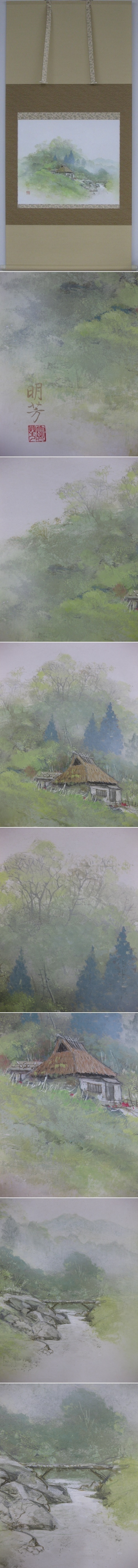深い緑に包まれた山里を清涼感あふれる筆使いで描いた見る人に安らぎと安堵感を与えてくれる山水画の秀作です。(新品・肉筆)