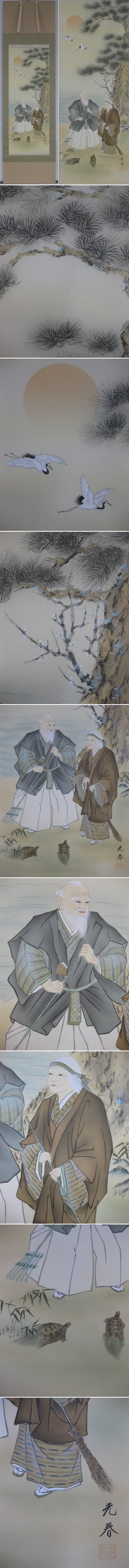 共に白髪の生えるまで,高砂の故事に由来する縁起題材。結納・婚礼に欠かすことのできない慶祝画を繊細な描写力,高雅な色調で描き上げた推奨作です。(新品・肉筆)