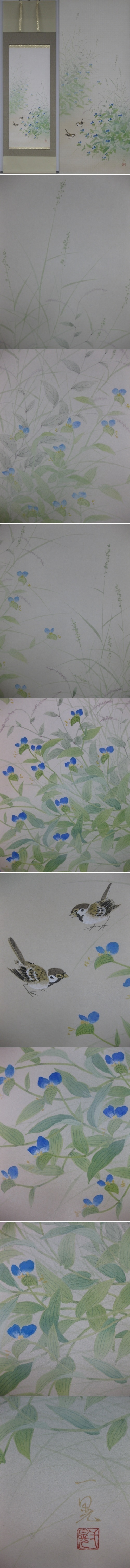 淡い表現で描かれた露草が夏の床の間に爽やかさを運びます。夏の床の間に飾っていただきたい優雅な一幅です。(新品・肉筆)