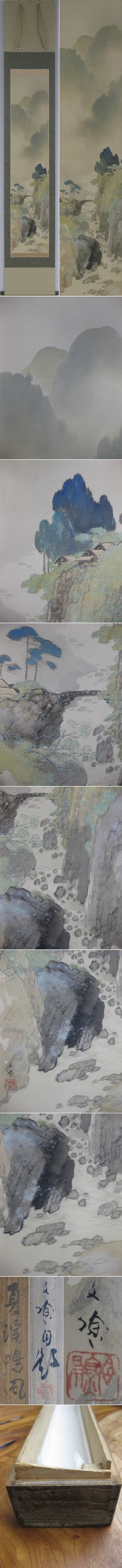 細かい汚れありますが鑑賞には問題ない程度です。。表装は新しく仕立て直してありますので状態は良好です。桐箱に壊れた個所があります。(写真下段参照) |