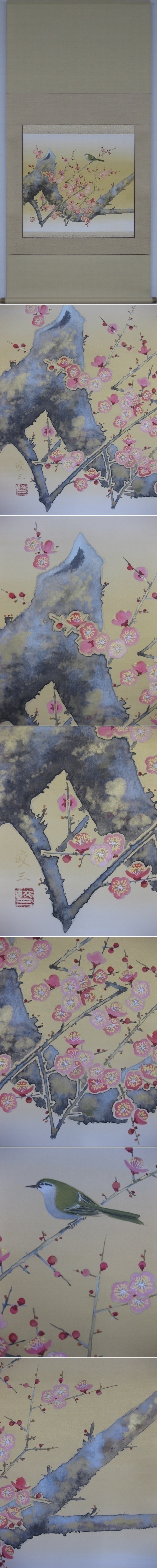 梅の花の凛とした華やかさと,清らかな鴬の鳴き声が,春の訪れを感じさせます。縁起の良い紅梅がやがて満開に咲き誇り,来る春の慶事を予感させます。(新品・肉筆)