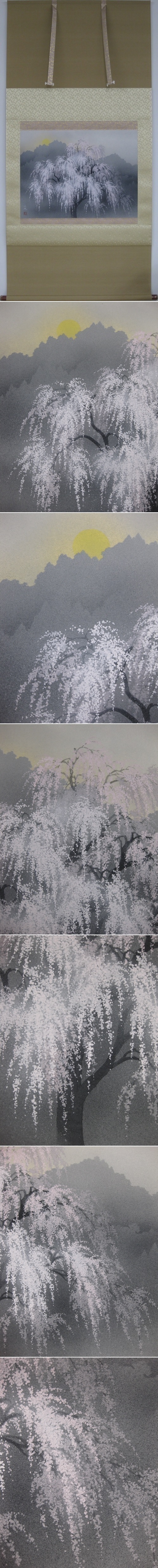 上品に落ち着いた色調の背景に,桜の花の凛とした華やかさと美しさが見る人の心を引き寄せる美しさに満ちた作品です。(新品・肉筆)