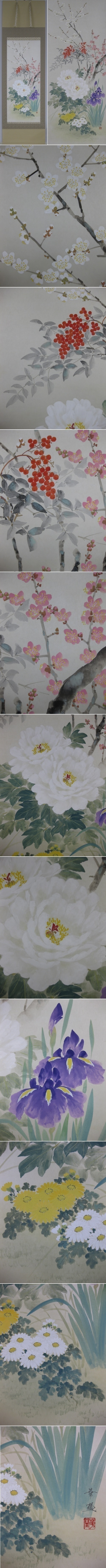 絶妙なバランスで描かれた花々は,それぞれ四季を代表する吉祥の名花。年中掛けていただける人気の作品が吉祥の趣をもたらしてくれます。(新品・肉筆) |
