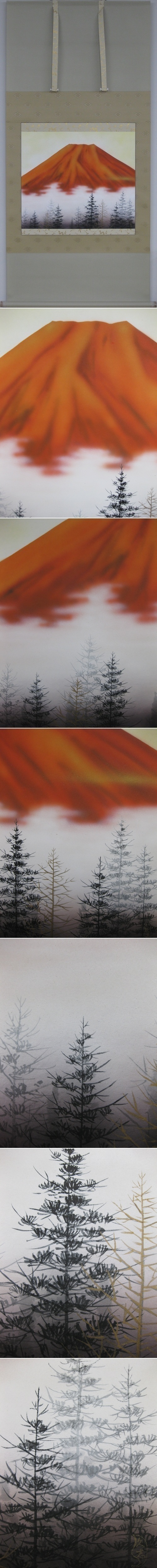 清らかな空気の中,夜明けの一瞬,霊峰が真紅に染まる神秘的な現象を,崇高な趣で華麗に描き上げためでたさ極まりない作品です。(新品・肉筆) |