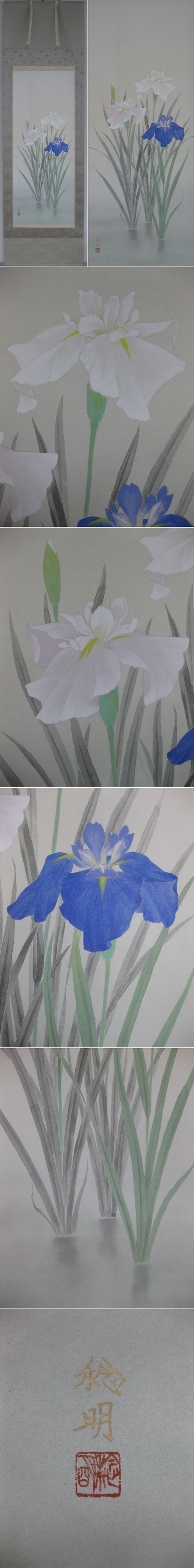 菖蒲の葉は剣のように力強く「尚武」、「勝負」に通じ、その芳香は邪気をはらうといわれております。落ち着いた色調で描かれた高級感あふれる逸品です。(新品・肉筆) |