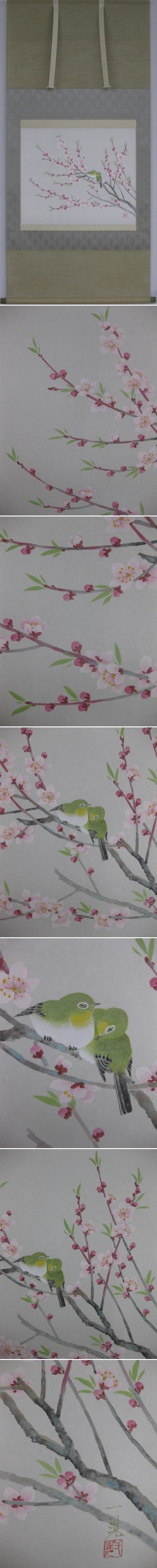 桃の鮮やかな紅色が,床の間に春の風を運んできてくれます。お雛様の人形を飾られた床の間にお掛けいただければより一層お部屋を華やかに演出いたします。(新品・肉筆)