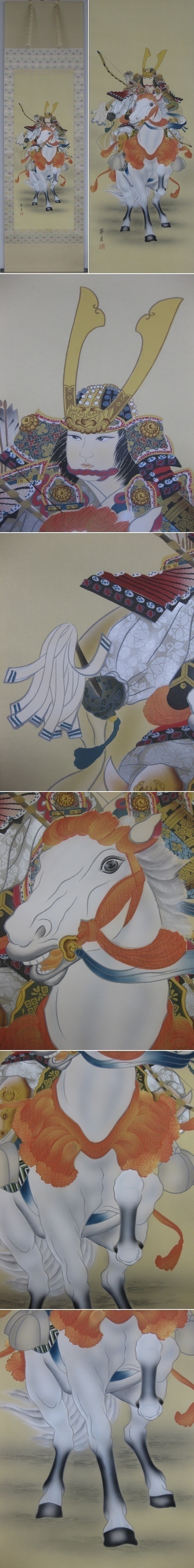 男子はご尊家代々の宝。大黒柱として逞しい成長を祈る節句飾りに勇壮果敢な文武両道の象徴である若武者の絵を飾り大きな夢を託します。(新品・肉筆)