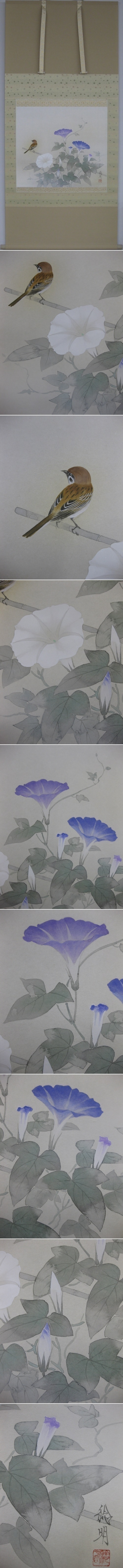 淡い色の柔らかな朝顔の花びらが咲く様子を見事な表現力で描いた爽やかさあふれる作品です。(新品・肉筆) |