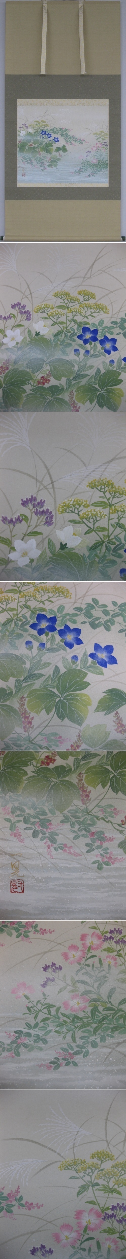 静かに色とりどりに艶やかさを競う秋の草花たち。絶妙の構図と緻密な線描で,秋の風情を実に見事に描き表した渾身の作です。(新品・肉筆)
