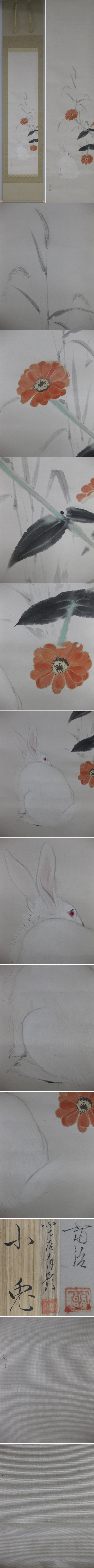 表装の天の細かい汚れ,本紙の軽い折れ,表装の軸棒のくぼみ(写真下段参照)ありますが鑑賞には問題ない程度です。