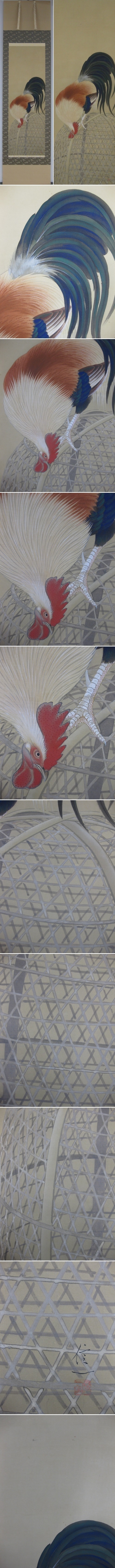 本紙の細かい汚れ(写真下段参照)足の胡粉の剝落等ありますが鑑賞には問題ない程度です。表装は新しく仕立て直してありますので状態は良好です。 |