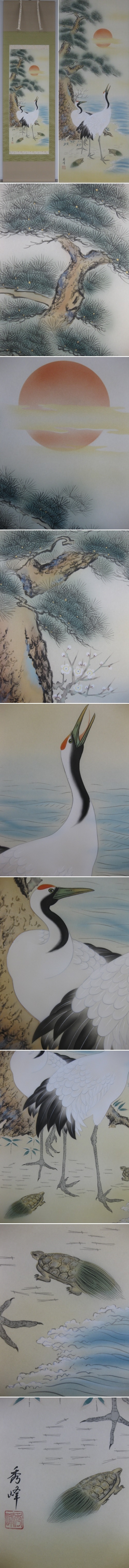 お正月をはじめあらゆる慶祝(還暦、喜寿、米寿、白寿、婚礼、結納等)の席にかかせない華やかな色合いの掛軸です。(新品・肉筆)