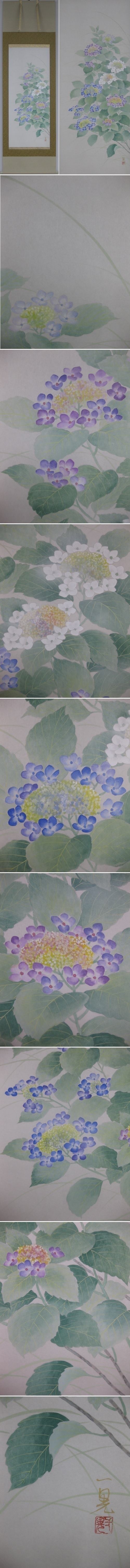 艶やかに咲き誇る八仙花を寺田画伯ならではのやわらかい筆致で表現された爽やかな掛軸です。(新品・肉筆)