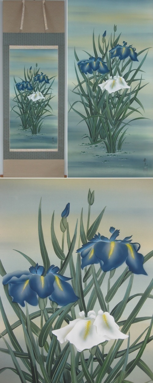 コメント 尺八立のお買い得な菖蒲の掛軸です。(新品・肉筆)