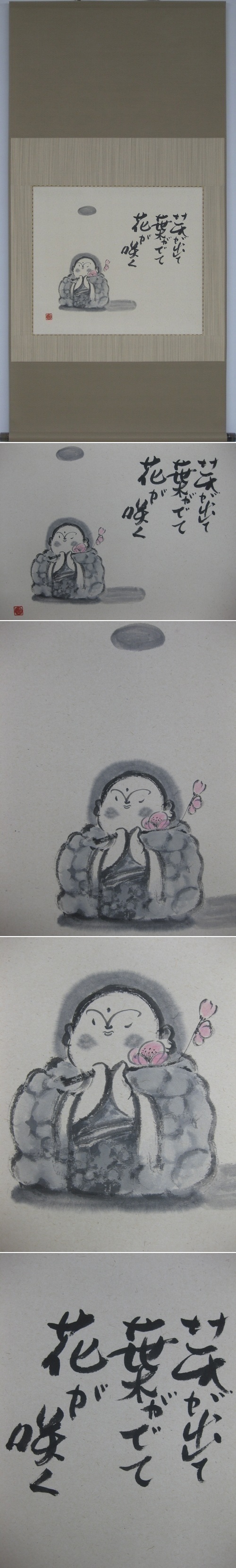 かわいらしいお地蔵様にとても癒されます。年中掛けていただる人気作です。(新品・肉筆)