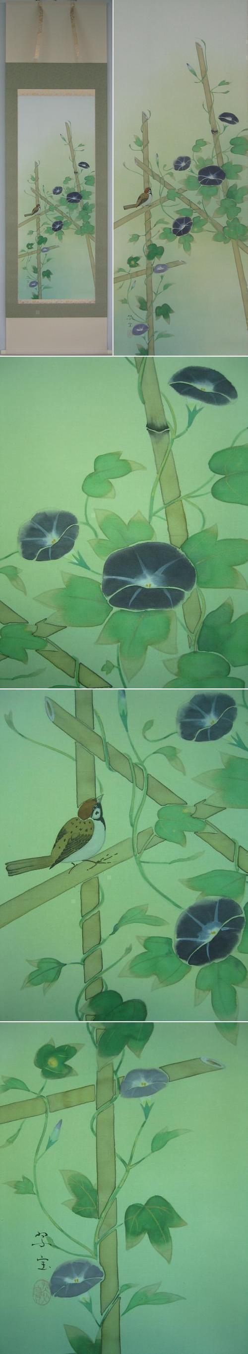 夏の風物詩、朝顔がしっとりとした落ち着いた色合いで描かれており、とても上品な作品です。(新品・肉筆)