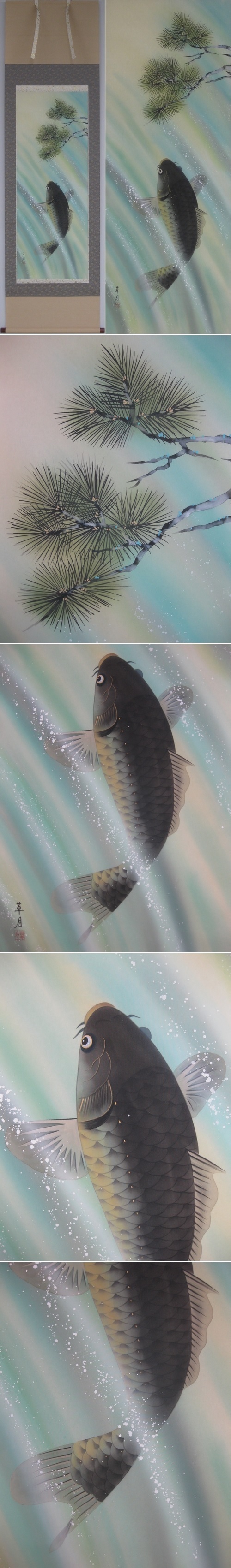 旺盛な生命力で急流を昇りきって龍となり,やがて天に舞い上がるとされる「登竜門」の故事により,出世栄達の象徴とされてきました。また,優雅に泳ぐ鯉の姿からは「富貴繁栄」「健康長寿」につながり,とても縁起の良い題材です。(新品・肉筆)