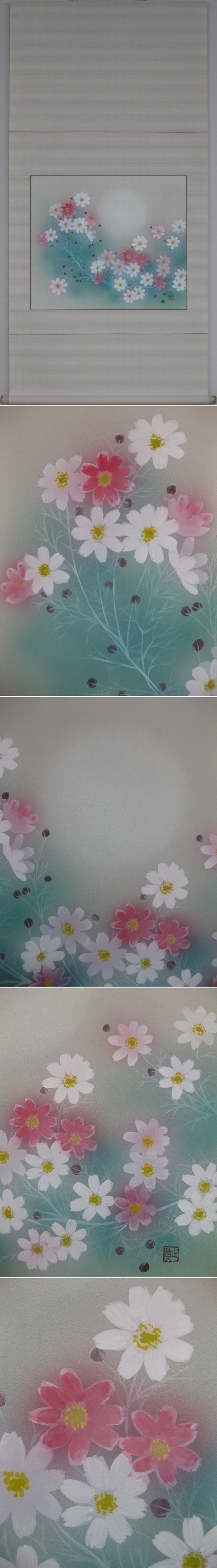 モダンな表装のおしゃれな掛軸でマンションなどの小さい床の間やタペストリー感覚でリビングや玄関などにも掛けていただけます。和風モダンのお宅にもぴったりな秋掛けです。(新品・肉筆)