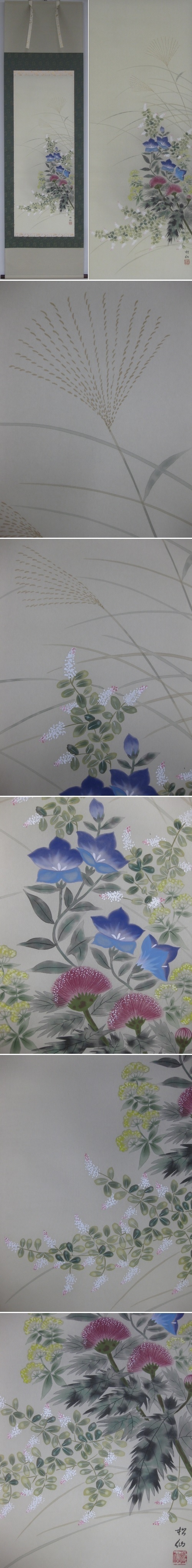 秋の風物詩秋草は、昔から沢山の人々に愛され親しまれてきました。秋の床の間におすすめの掛け軸です。(新品・肉筆)