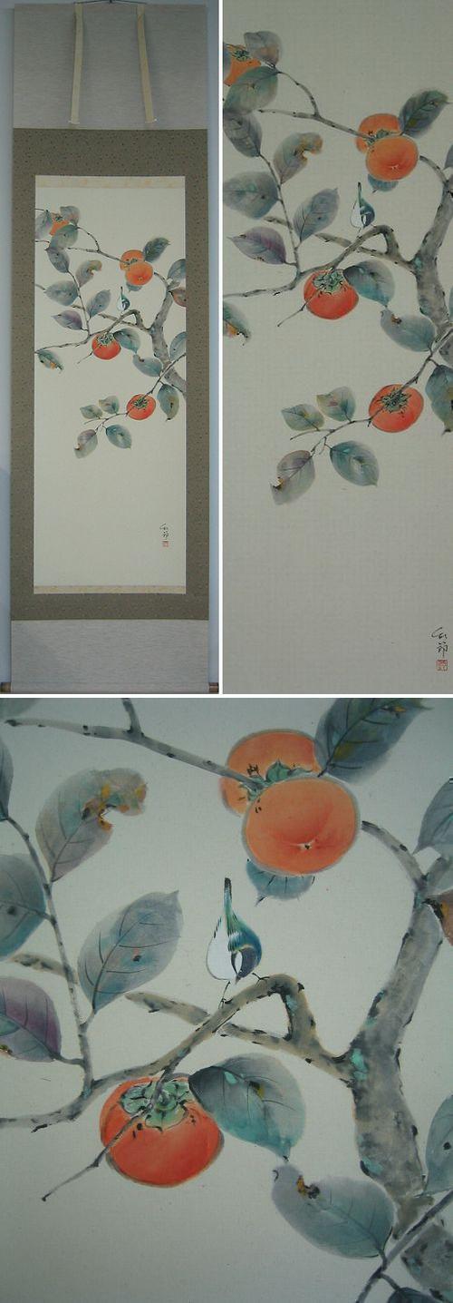 コメント 晩秋の風物詩「柿」が、しっとりと落ち着いた色調で描かれています。(新品・肉筆)