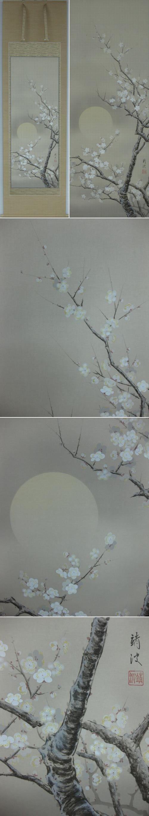 コメント 月光に浮かぶように咲く梅が幻想的に描かれた掛軸です。(新品・肉筆)