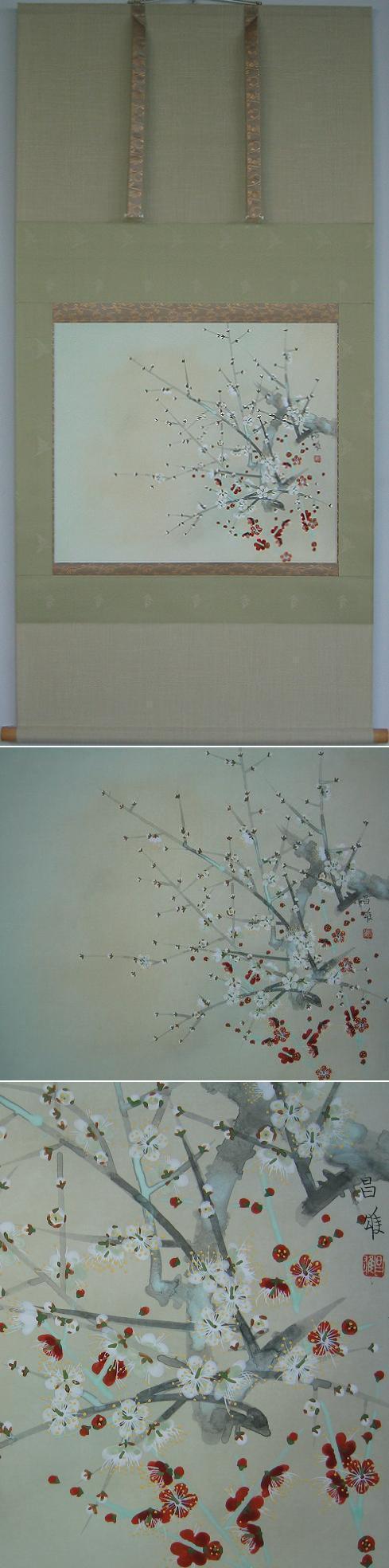 コメント 早春の床の間にぴったりな華やかな紅白梅の掛軸です。(新品・肉筆)