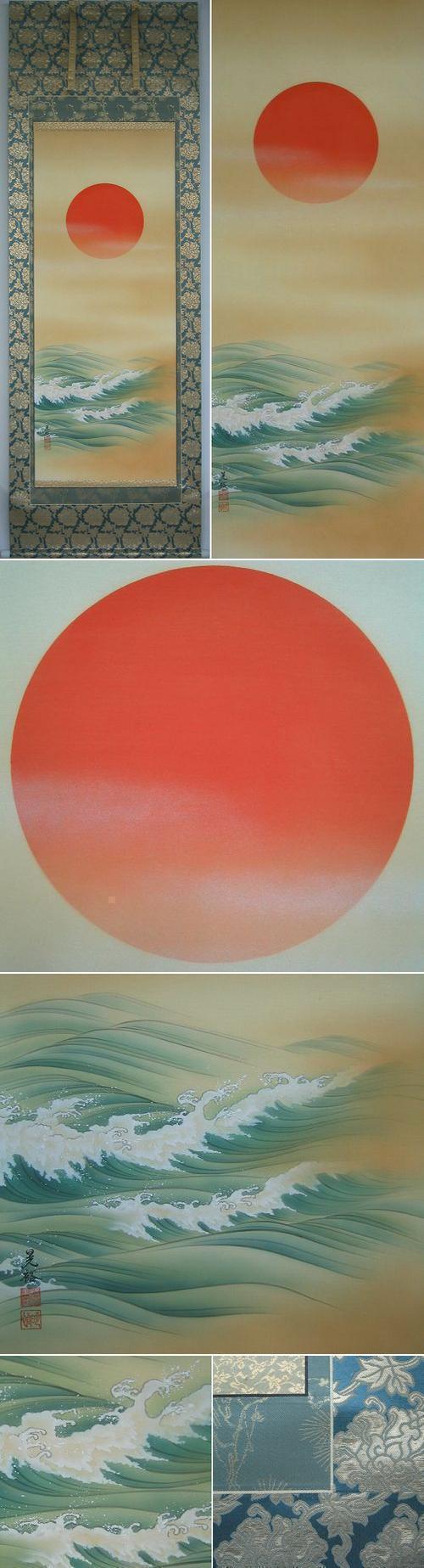 昇る旭日の如くご一家の隆盛を願って,お正月,慶祝の席に掛けます。    (新品・肉筆)