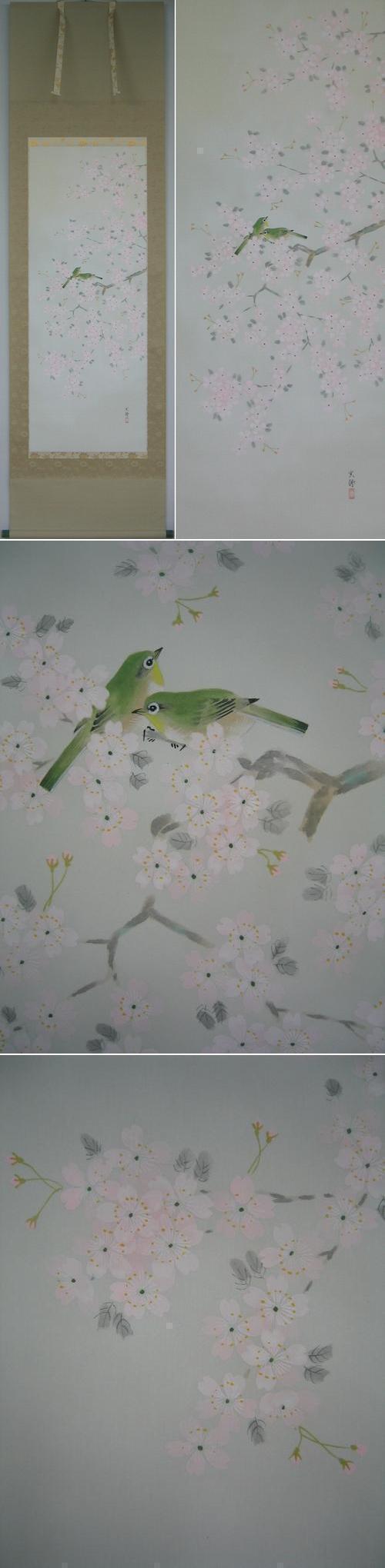 コメント 春の床の間を華やかに演出してくれる、明るい桜の掛軸です。(新品・肉筆)