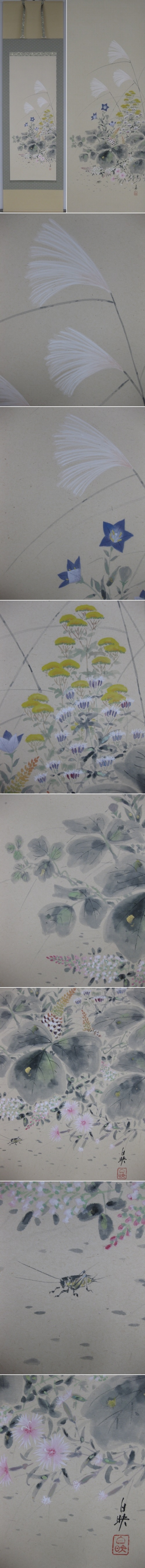 秋の風物詩秋草は、昔から沢山の人々に愛され親しまれてきました。秋の床の間におすすめの掛け軸です。(新品・肉筆)