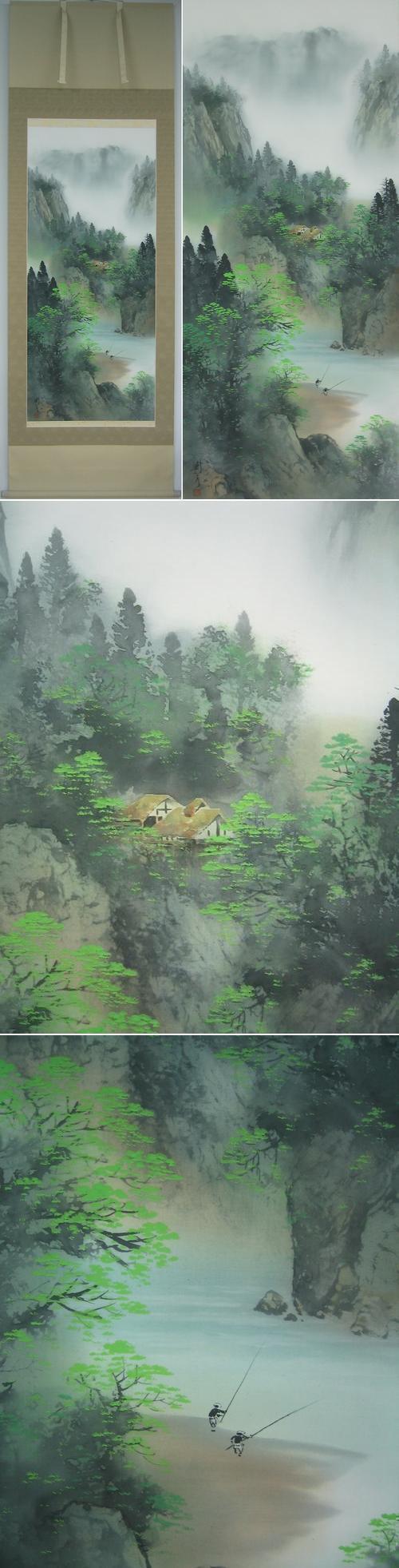 深緑に装いを変えた渓流の山里を叙情豊かに描いた作品です。(新品・肉筆) |