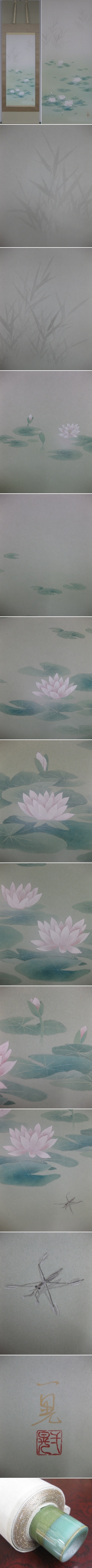 涼やかな水辺の情景に彩りも鮮やかな睡蓮。夏の床の間に飾っていただきたい優雅な一幅です。(新品・肉筆)