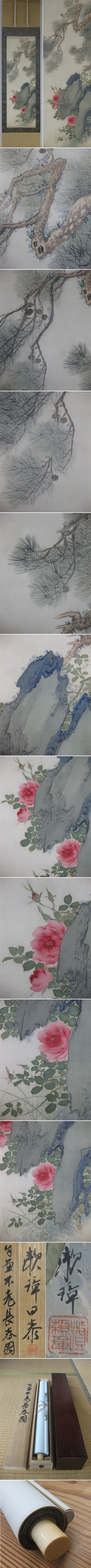 本紙は積年の薄い汚れありますが鑑賞には問題ない程度です。表装の天地以外の中回し・柱・風袋は当時の布を使って仕立て直してありますので状態は良好です。(手打ち表装) |