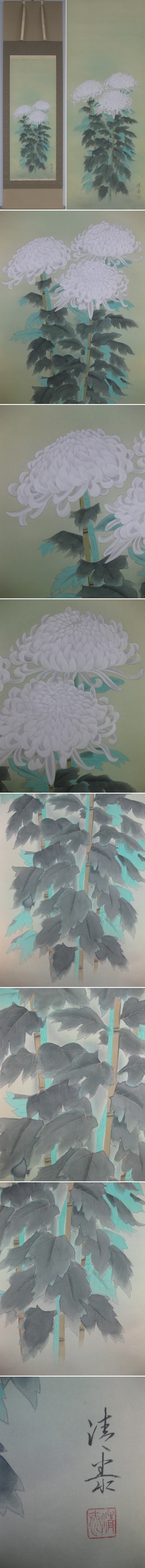 落ち着いた色調で情感あふれる菊の花を優美に描いた秋の季節掛けです。(新品・肉筆)