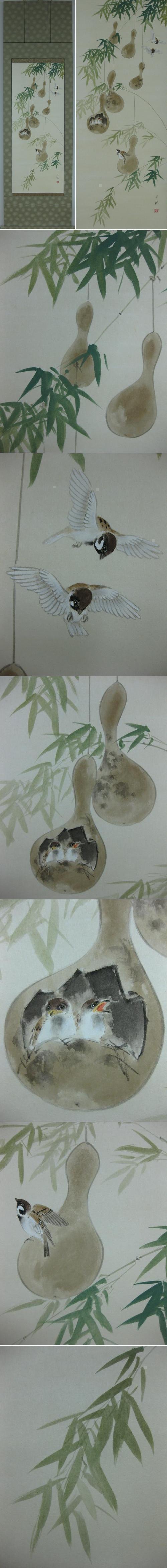 すずめの親子がとてもかわいらしく描かれています。(新品・肉筆) |