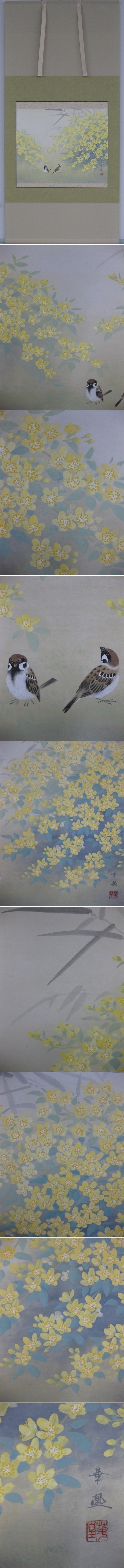ほのぼのとした色使いがとても春らしく,心浮き立つような華やかさに満ちています。画歴豊富な作者が熟練の筆致で情緒豊かに描いた春の掛軸の名品です。(新品・肉筆) |